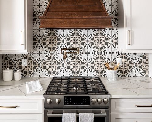 • Accent tiles that sparkle and shine, like jewelry that sets off a beautiful outfit; these tiles feature mosaic inserts of glass, metallics, and stone